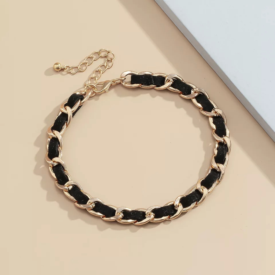 faux Leather Vintage style and Gold metal bracelet #blackkollection