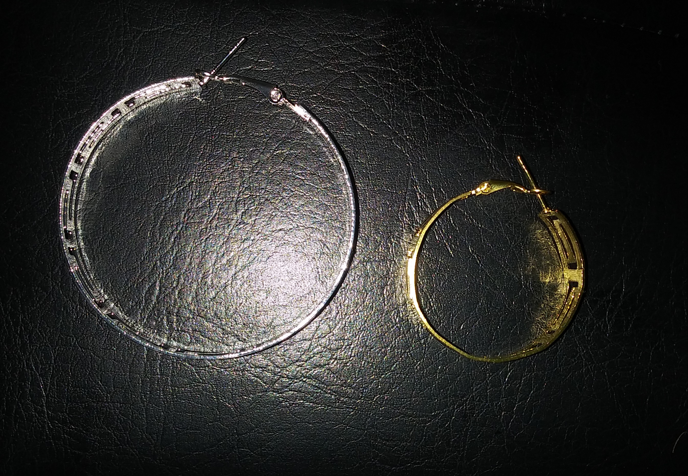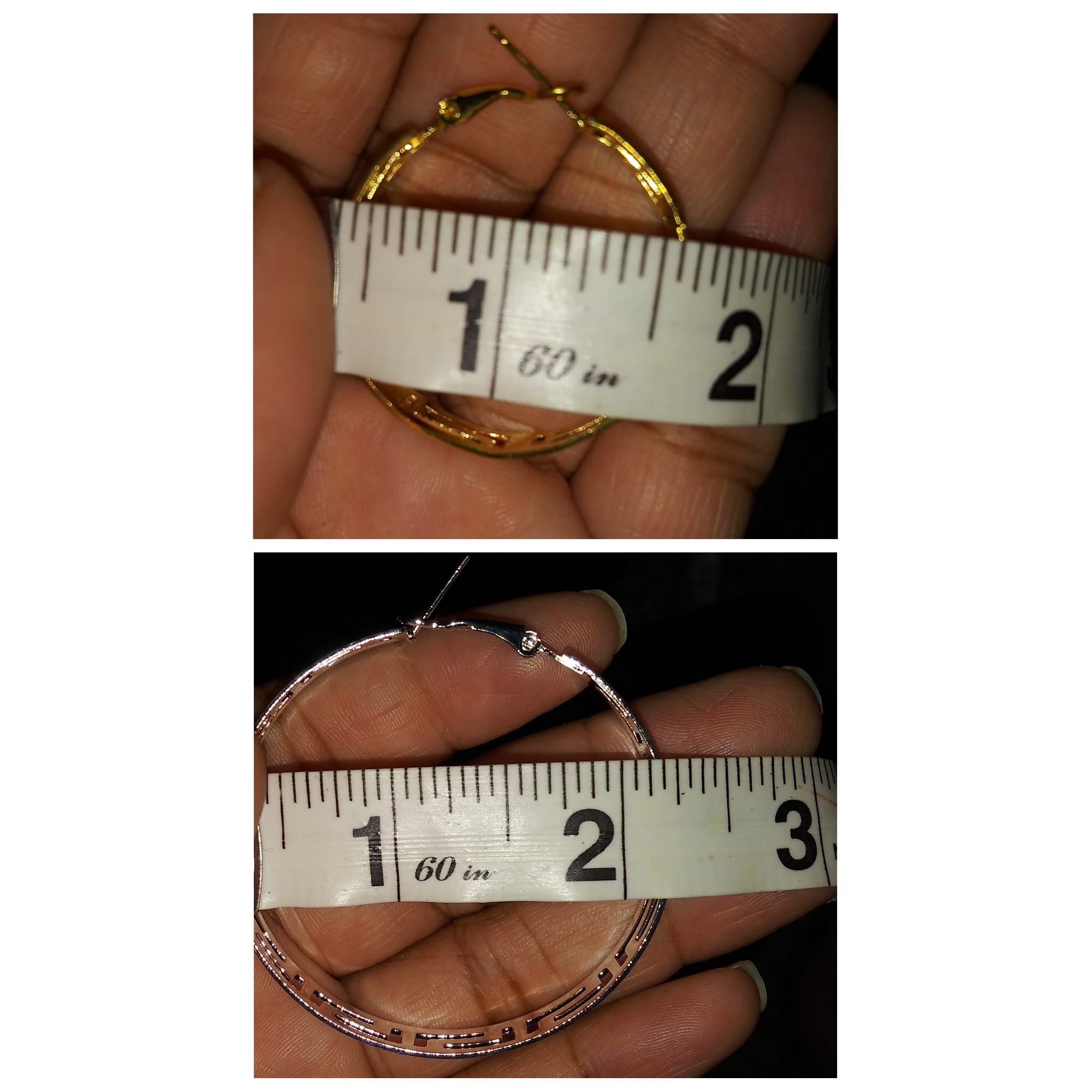 2 pair set 1 pair Silver 1 pair Gold 2 different sizes, gold, smaller then the silver. Refer to pictures for measurements