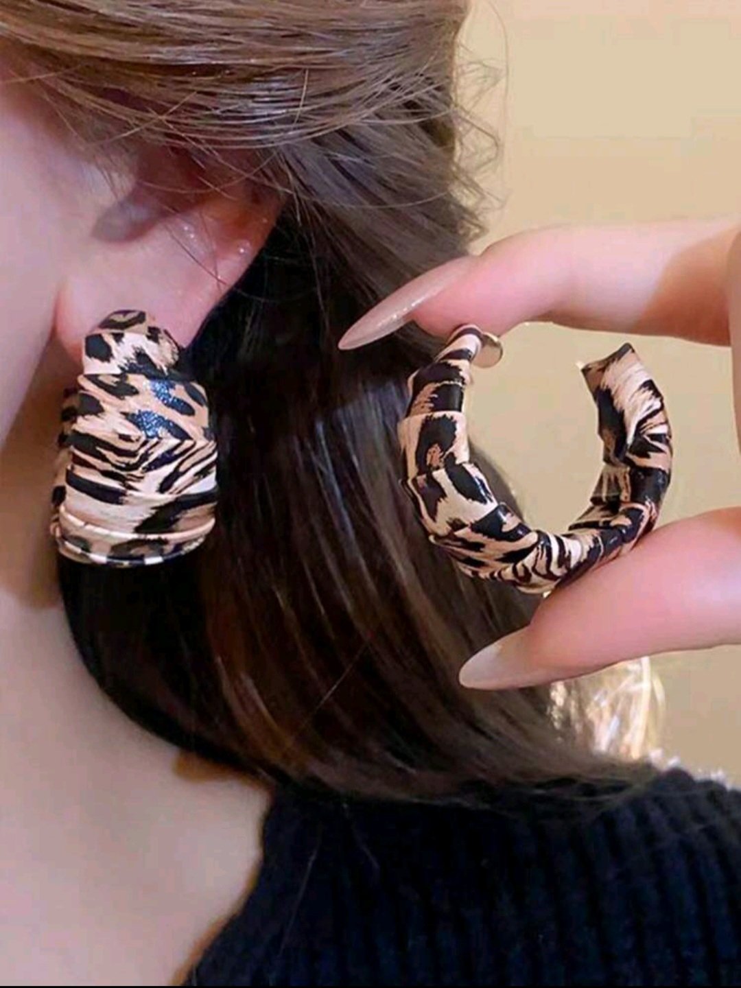 Leopard Print Faux Leather Hoop Earrings